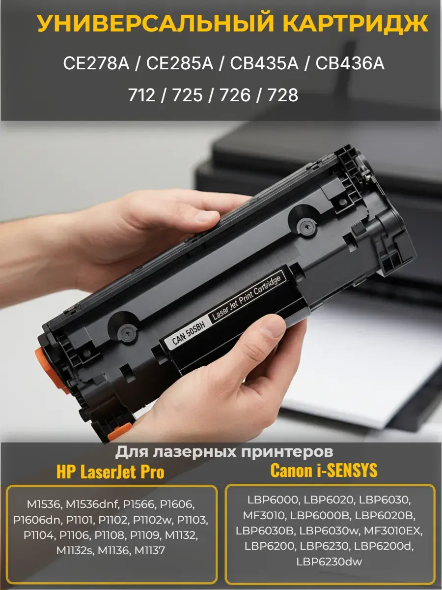 Универсальный тонер-картридж CE278A / CE285A / CB435A / CB436A / 712 / 725 / 726 / 728 с чипом — надёжное решение для вашего принтера HP и Canon!